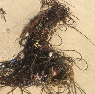 The variety on just this one beach was astonishing. There were brown, bulbous pockets the size of a coin pouch; long strappy fronds that looked like liquorice shoelaces; bright leafy-green clumps like alginous lettuces; pillows of golden fluffy thread; barely opaque strands of white spaghetti with nodules along their length; and pink ones with branched stems.